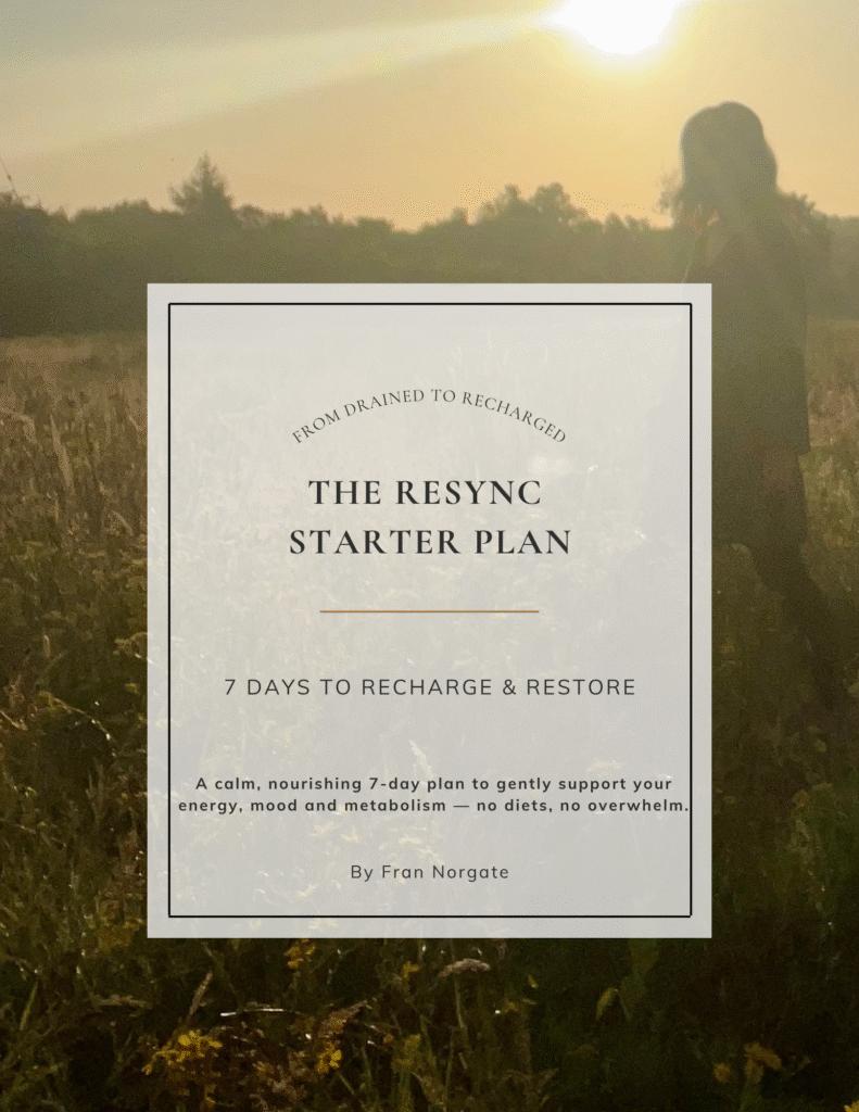 The Resync Starter Plan is your free guide to gently restoring energy, balance, and clarity—without diets, overwhelm, or starting from scratch.
